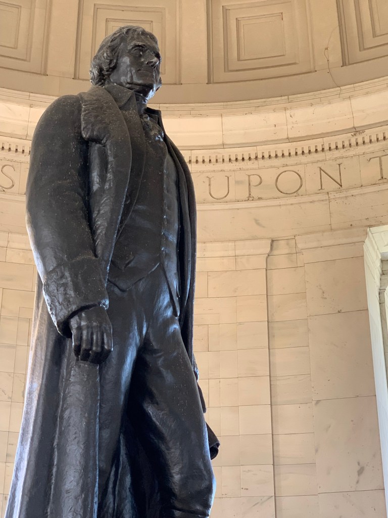 We flew back for Katie and Eamonn’s much-delayed (yup, COVID) wedding reception in Potomac, Maryland, a few miles upstream from our nation’s capital, and decided to come in a few days early for visits to Abe and Tom and the new Museum of African American History and Culture, and for strolls along the vistas laid out by Charles L’Enfant two-odd centuries ago for President Washington. Our strategy served, as we hoped it would, as a restorative antidote to the images polluting our brains since January 6 when a howling mob of banshees and jackals and knuckleheads stormed our citadel of democracy while elected officials inside tried to fulfill their constitutional duty.